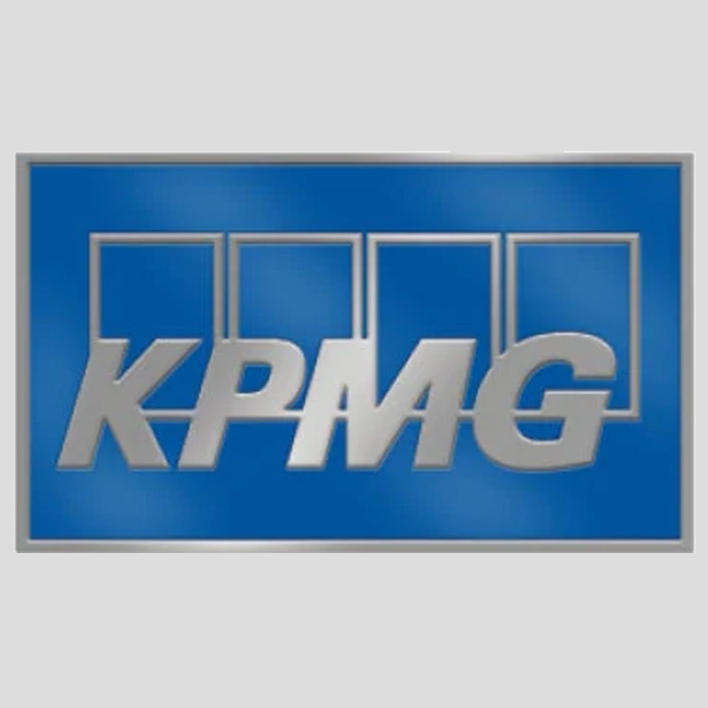 Pièces moulées sur mesure, fabriquées, finies et colorées à la main. Logo KPMG en relief, couleur argent, avec dos magnétique.